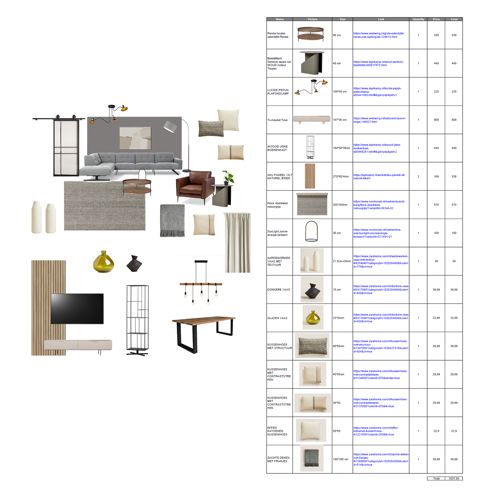 You become a final concept solution and the check-list, where you can see all links for buying and total budget of project.